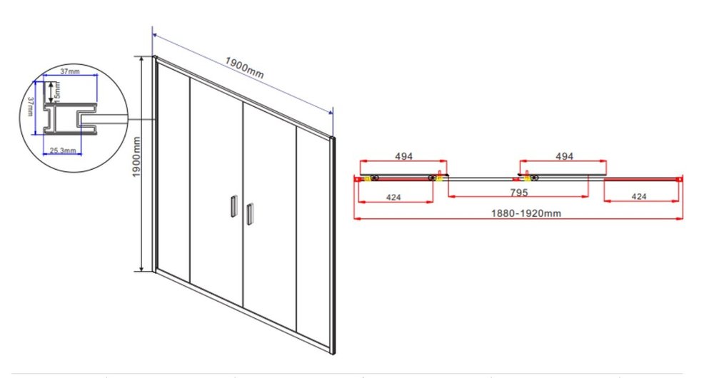 Душевая дверь Vincea Garda VDS-1G2 190 см раздвижная, стекло шиншилла, профиль хром, VDS-1G2190CH