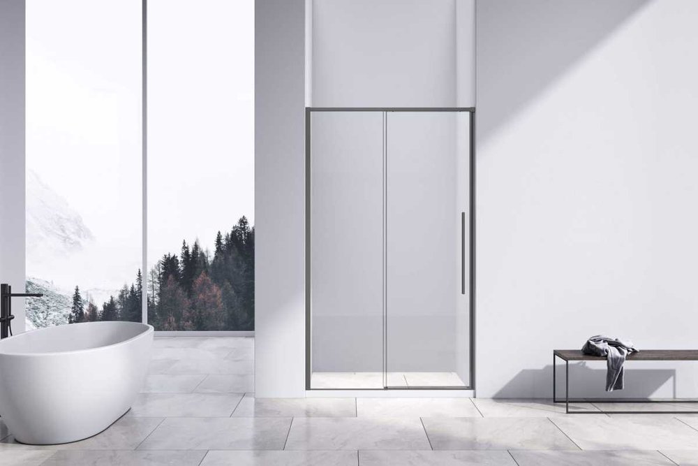 Душевая дверь Vincea Slim-N, 140 x 195 см, раздвижная, стекло прозрачное, профиль воронёная сталь, gunmetal, VDS-4SN140CLGM