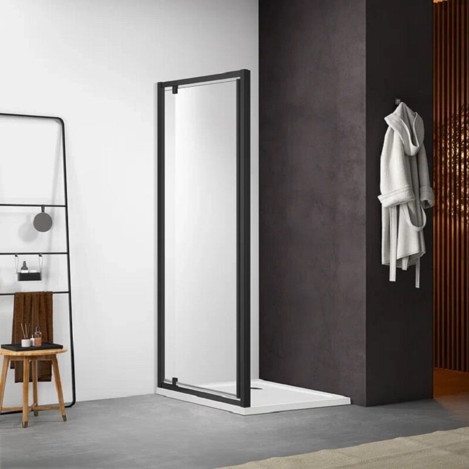 Душевая распашная дверь Aquatek, 100 х 200 см, стекло прозрачное, профиль черный, AQ ARI PI 10020BL