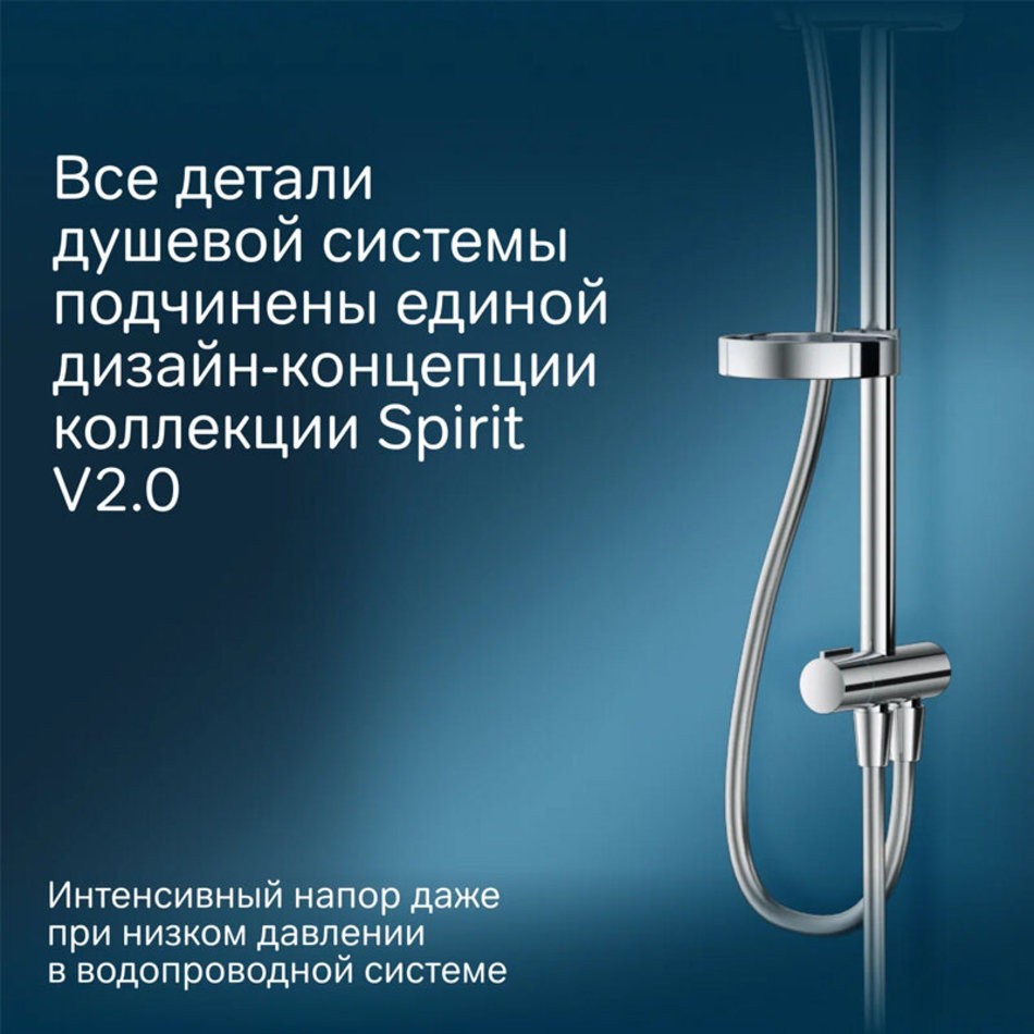 Тотальный дизайн в действии: все детали душевой системы – от пропорций ручного и верхнего душей до рисунка расположения форсунок на лейках – подчинены единой дизайн-концепции в ультра-модном стиле Dynamic Organic.Продуманные детали для удобства использования: штанга регулируется по высоте в диапазоне от 1 030 до 1 460 мм, обеспечивая комфорт для людей любого роста, шаровый шарнир в держателе верхнего душа позволяет регулировать угол его наклона, душевой шланг 1750 мм, верхний душ диаметром 254 мм, ручной душ диаметром 120 мм.Переключающий вентиль с керамическим картриджем, 3 режима ручного душа (Spray, EnerJet, Spray + Massage, переключатель режимов Simple Switch Push), функция Rub&Clean для легкой очистки душевых форсунок, регулируемый в трех плоскостях держатель ручного душа, шаровой шарнир в держателе верхнего душа позволяет регулировать угол наклона, шарнирное соединение защищает душевой шланг от перекручивания.