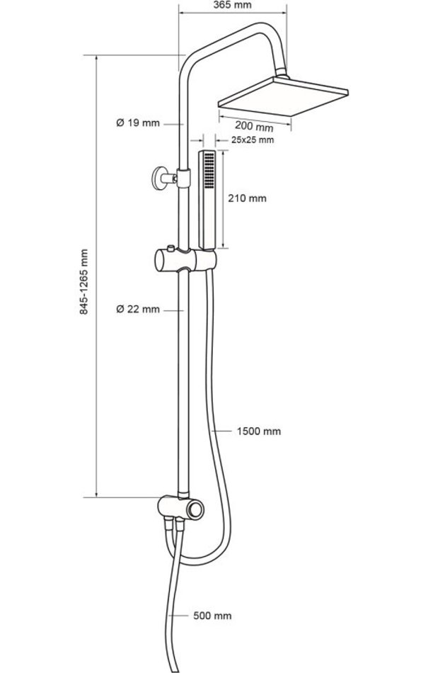 Душевой гарнитур Aquanet Practic S AF100-70-S-C, с квадратным верхним душем 20 см, 1 режим струи, хром (243319)