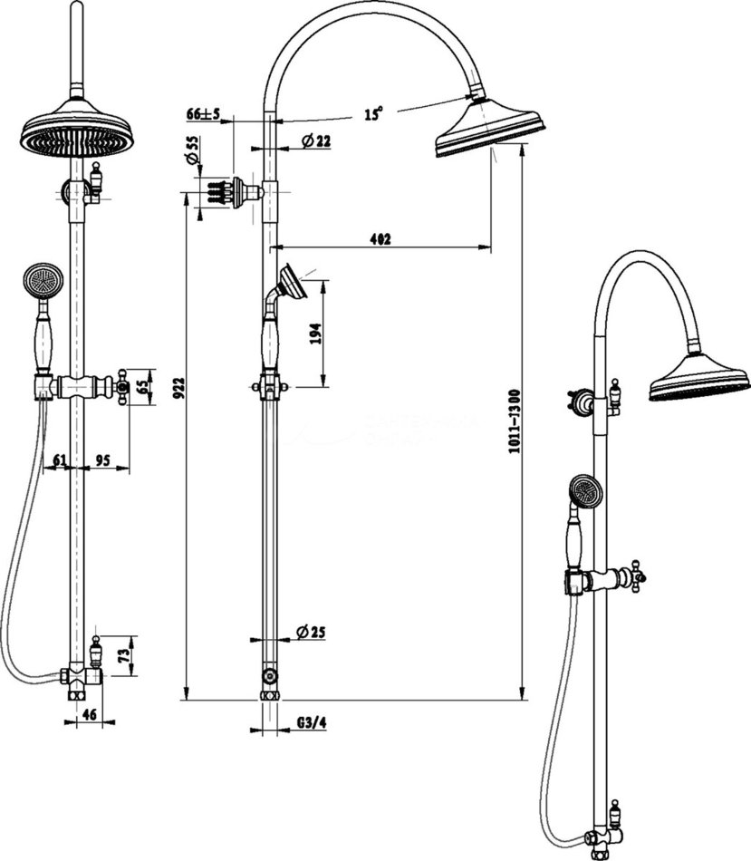 Душевой гарнитур Boheme Brillante с верхним душем 20 см, хром, 403, 1 режим струи