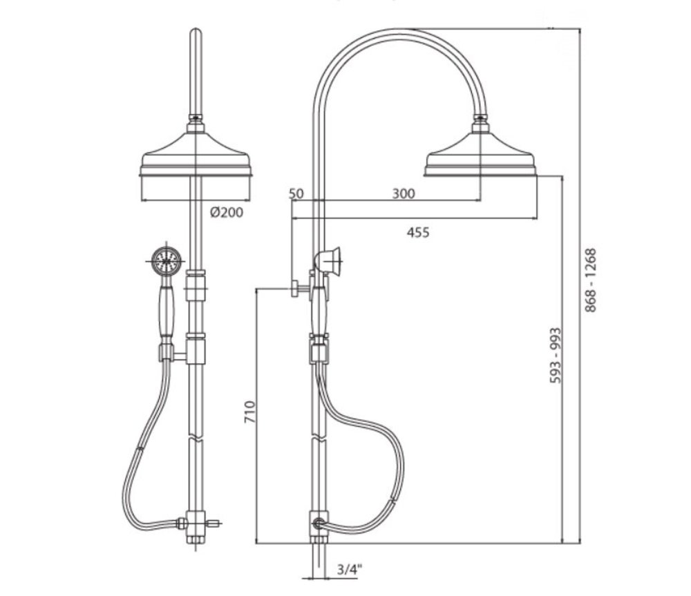 Душевой гарнитур Cezares VINTAGE-CAE-03/24-M с верхним душем, золото