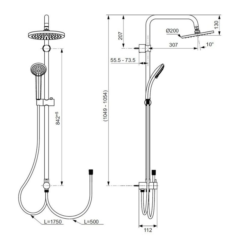 Смеситель заказывается дополнительно. Дополнительно необходимое оборудование: Удлинитель штанги для душевых систем IDEALRAIN (SOFT, CUBE, ECO, LUXE, PRO), 150 мм / 300 мм, хромированная латунь. Диаметр 25 мм. Накручивается на штангу в месте соединения штанги с патрубком верхнего душа.
