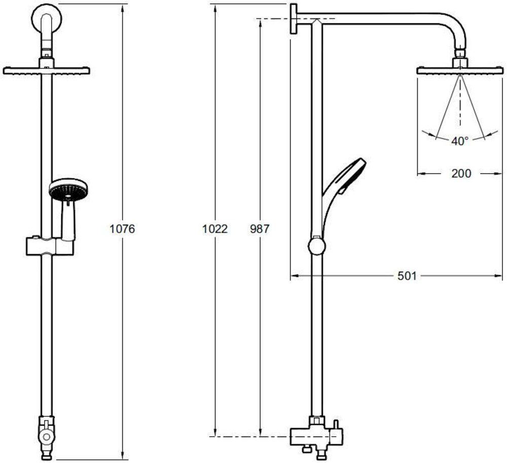 Монтаж осуществляется на стену. Конструкция оснащена двумя специальными отверстиями для установки. Размеры модели составляют 20х102.2х50.1 см, длина шланга – 160 см. Комплект поставки включает душевую стойку, лейку, шланг, верхний душ, держатель душа и инструкцию. Гарантия на модель – 5 лет.