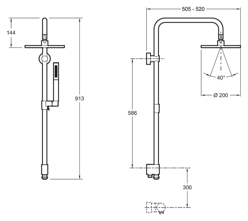 - Душ с металлическим верхним душем 200 мм