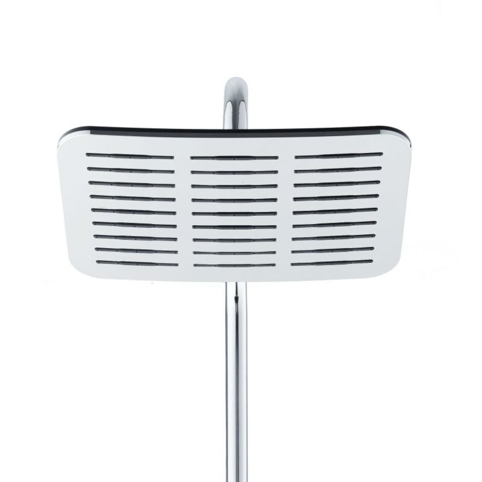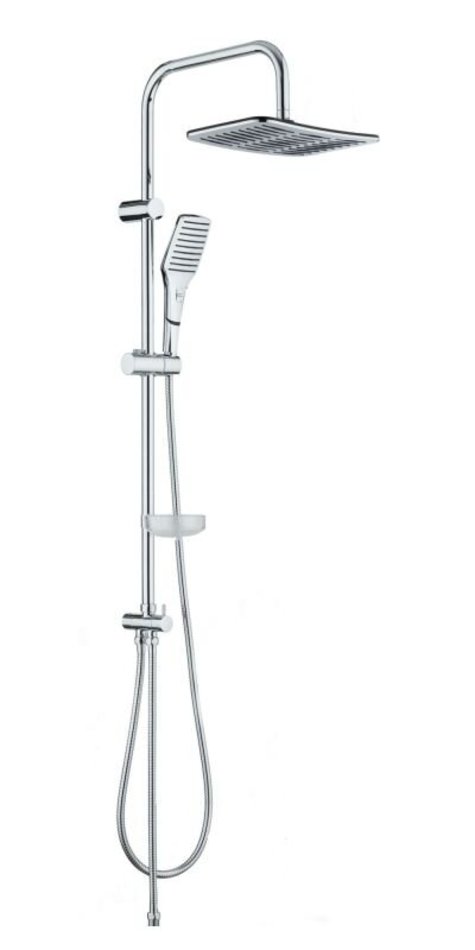 Комплектация: верхний душ, держатель штанги, держатель лейки, шланг для душа, душевая лейка, душевая штанга, мыльница, переключатель потоков, к-т креплений, инструкция