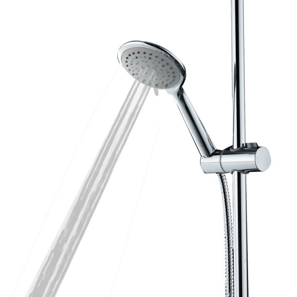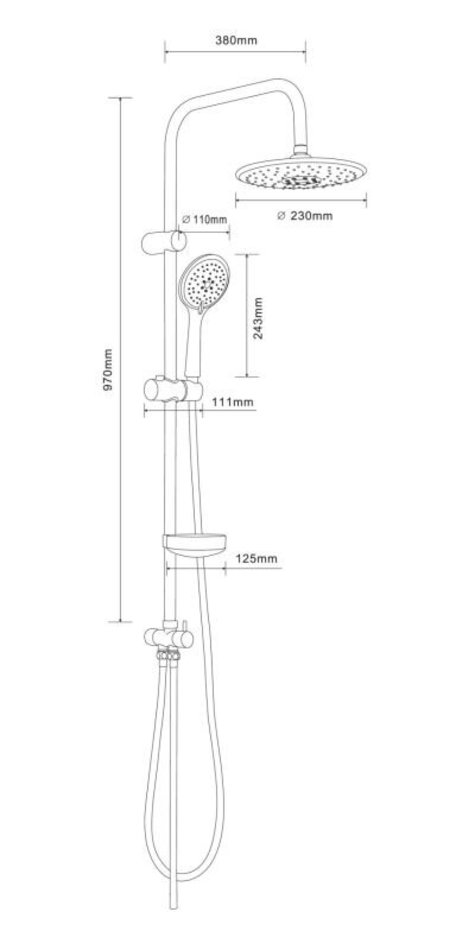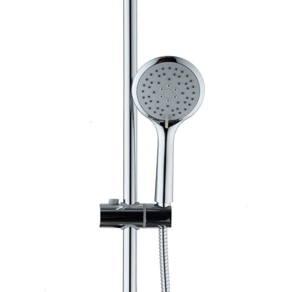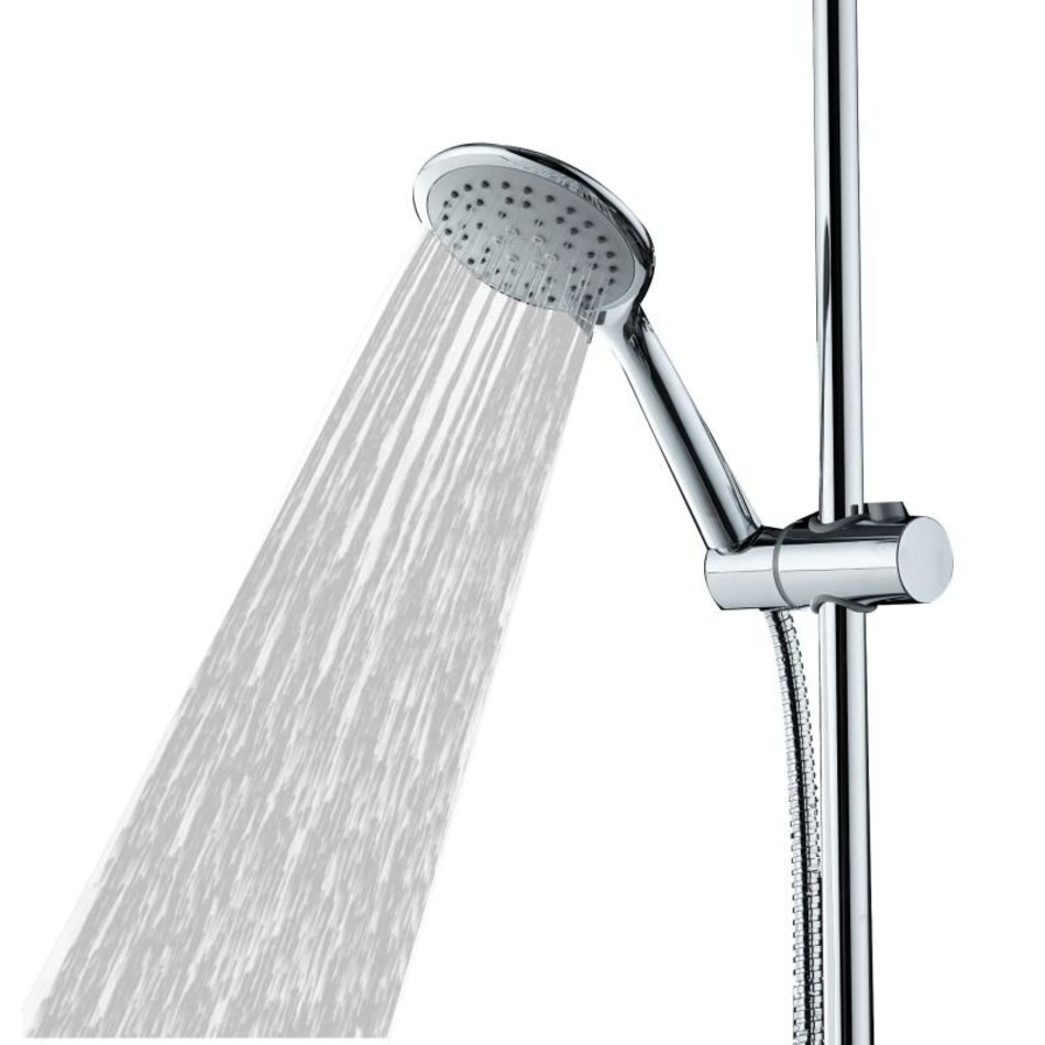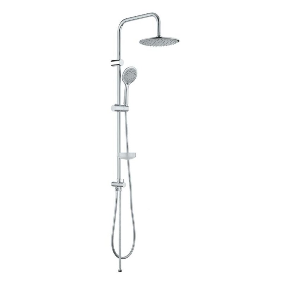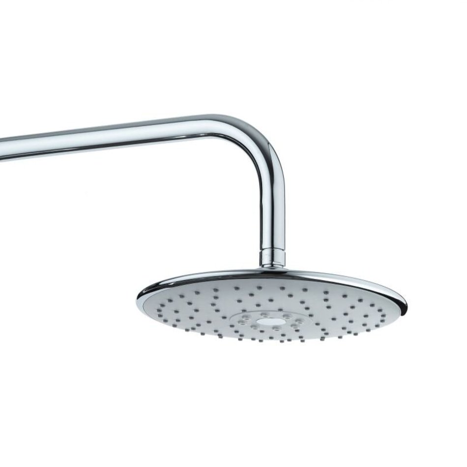 Эту универсальная модель легко впишется в любой интерьер, не будет перетягивать внимание с других деталей и порадует вас высокой надежностью и ни с чем несравнимым удобством в использовании. Система включает круглый верхний душ диаметром 230 мм и ручной душ - более привычный консервативным пользователям, диаметром 110 мм. Последний, кстати, имеет 3 режима подачи воды для регулирования интенсивности струй. Дополняет комплект штанга общей высотой 97 см, шланг и держатель для лейки, небольшая мыльница с возможностью крепления на штанге..