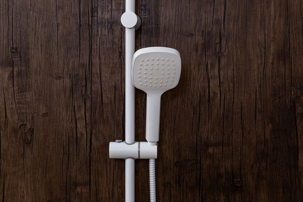 Душевая система Orange O-Shower в цвете белый матовый: верхний душ (230х230 мм) создаёт эффект тропического дождя, что дарит непередаваемые эмоции во время ежедневных банных процедур. Ручной душ 120 мм (1 режим) на гибком полутораметровом шланге (в металлической оплетке) с защитой от перекручивания. Держатели верхнего и ручного душа с регулировкой угла наклона, штанга 970 мм с подвижным держателем (возможность установки в старые отверстия). Подвижные детали отличаются долговечностью. Форсунки верхнего и ручного душа с функцией легкого очищения от известкового налета.