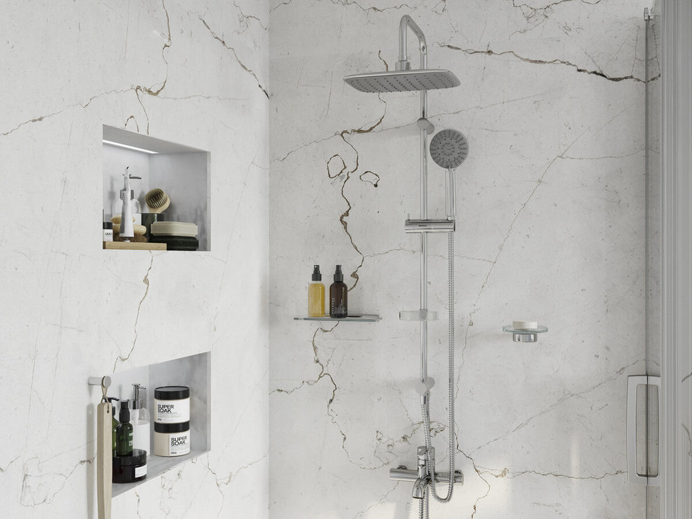 Душевой гарнитур Stworki «Дублин HFDB97000» доставит истинное удовольствие от гигиенических процедур. Верхняя лейка создает эффект тропического дождя — струи равномерно покрывают тело, массируя и тонизируя кожу. С помощью скользящего держателя можно менять высоту однорежимного ручного душа. Для смены потоков предусмотрен поворотный дивертор. Мыло, шампунь или гель для душа всегда будут под рукой благодаря компактной мыльнице