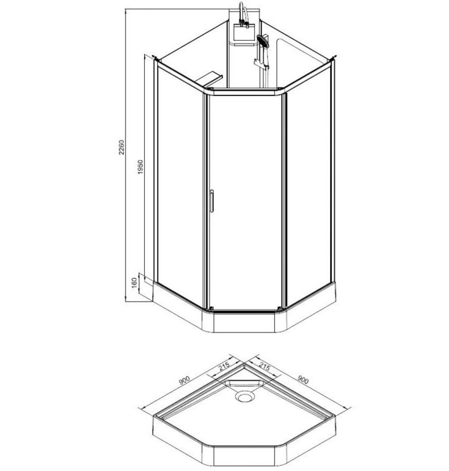 Душевая кабина Aquanet Passion P 90 x 90 имеет форму пятиугольника. В ней предусмотрено все необходимое: тропический душ в верхней части элегантно изогнутой душевой стойки молочного цвета, три форсунки гидромассажа для спины, ручной душ на подвижном держателе штанги, позволяющий установить лейку на удобной высоте. Белоснежные задние стенки с интегрированным в них зеркалом, стенки и распашная дверца с прозрачными стеклами придают кабине воздушность и легкость. Стеклянная дверца и стенки заключены в алюминиевый профиль, не подверженный коррозии, с возможностью компенсации неровностей стен. Места такая кабина займет немного, а комфорт при этом обеспечит оптимальный.