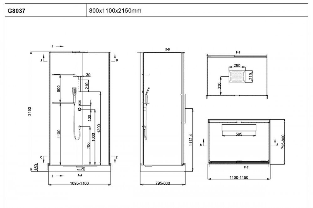 Душевая кабина Black&White Galaxy G8037, 80 x 110 см, с гидромассажем, стекла прозрачные, профиль черный матовый, 8037000