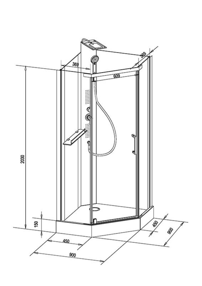 Душевая кабина Black&White Galaxy G8705, 90 х 90 см, с гидромассажем, стекла прозрачные, профиль черный матовый, 8705900