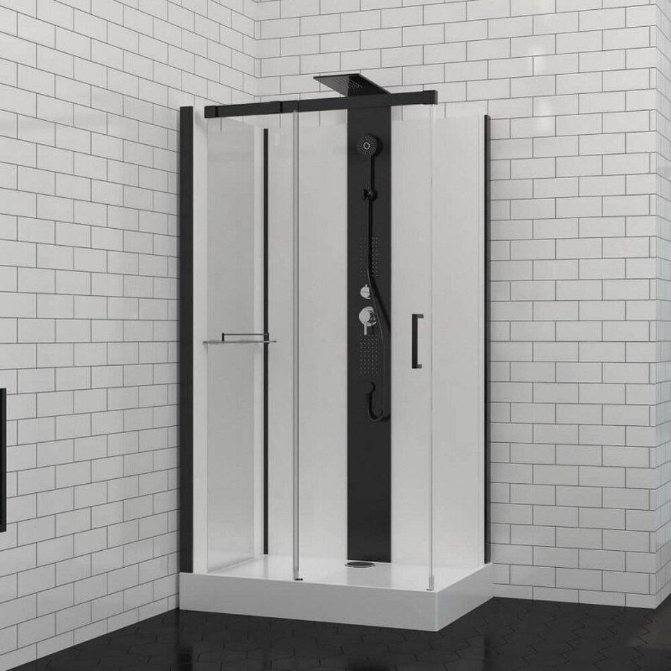 Душевая кабина Black&White Galaxy G8708, 80 x 110 см, с гидромассажем, стекла прозрачные, профиль черный матовый, 8708000