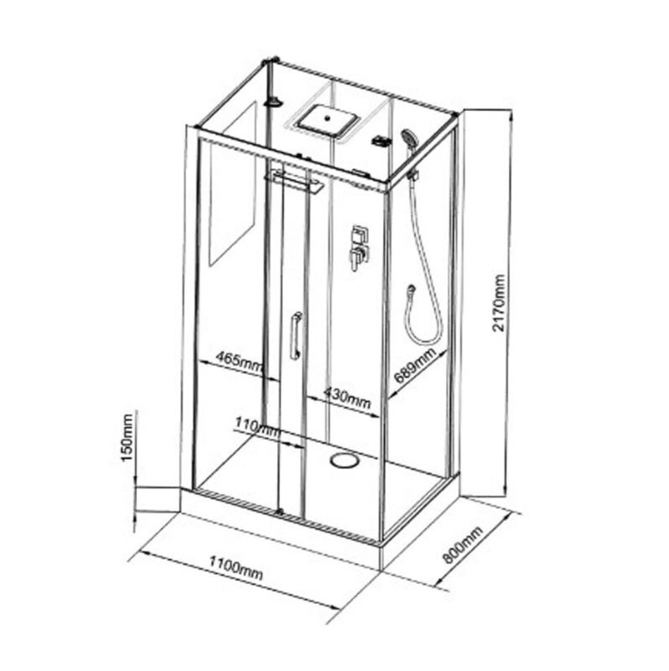 Душевая кабина Black&White Galaxy G8800, 80 x 110 см, с гидромассажем, стекла прозрачные, профиль черный матовый, 8800110