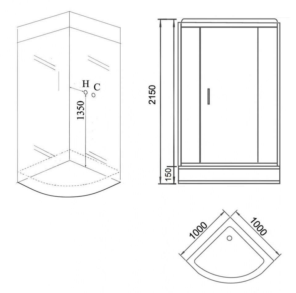 Душевая кабина Grossman 100 x 100 см, четверть круга, белый, GR160