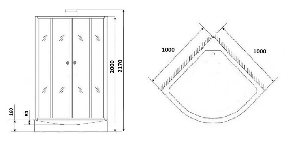 Душевая кабина Grossman 100 x 100 см, четверть круга, черный, GR250