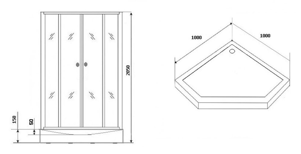 Душевая кабина Grossman 100 x 100 см, пятиугольная, черный, GR270D