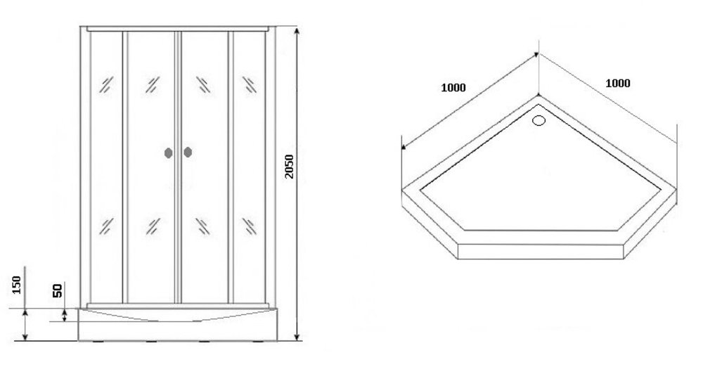 Душевая кабина Grossman 100 x 100 см, пятиугольная, хром, GR170D