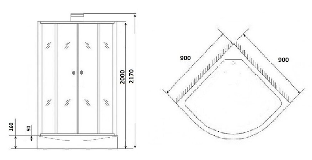 Душевая кабина Grossman 90 x 90 см, четверть круга, черный, GR251