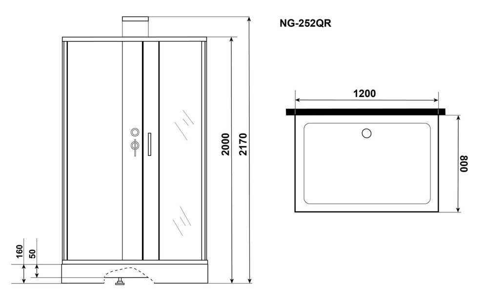 Душевая кабина Grossman Elegans 120 x 80 см, прямоугольная, профиль черный, GR252Q