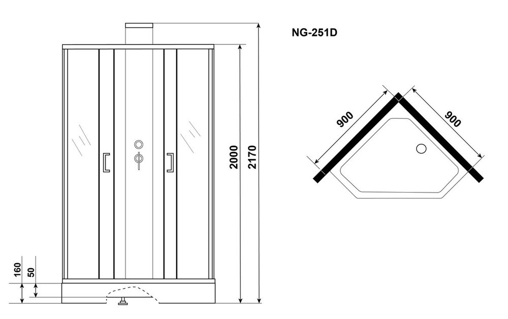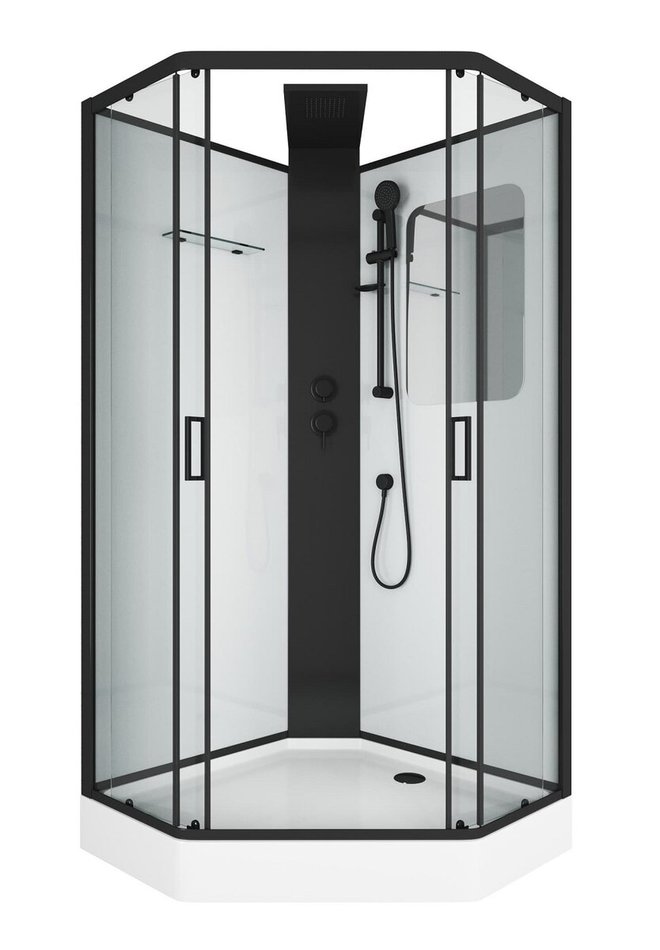 Душевая кабина Grossman Elegans 90 x 90 см, пятиугольная, профиль черный, GR251D