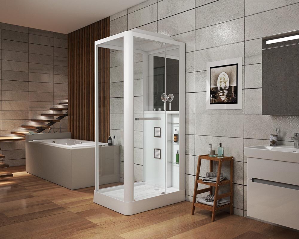 - Душевая кабина Grossman GR-122 - в белом цвете, с прозрачным стеклом.