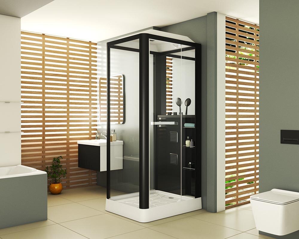 - Душевая кабина Grossman GR-222 - в черном цвете, с прозрачным стеклом.