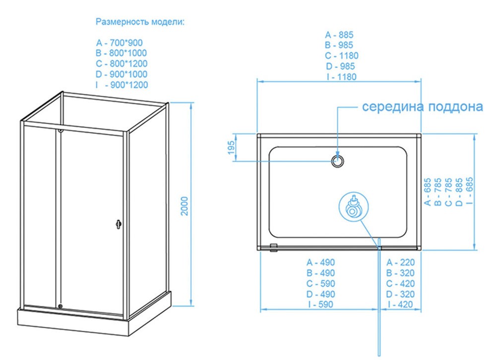- Размер: 70*70*200 см