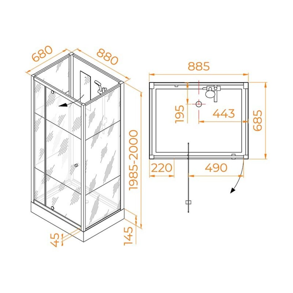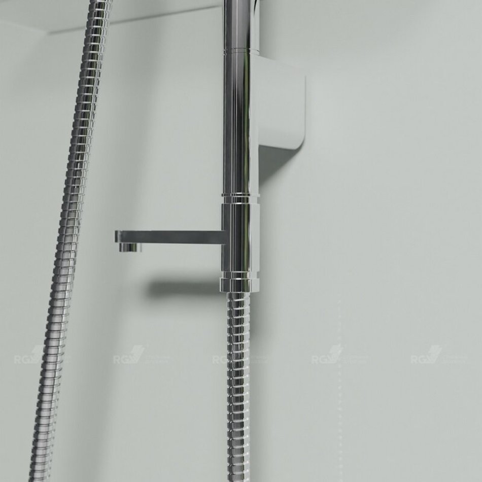 В комплектацию мы включили всё необходимое: сифон и гофру для подключения, смеситель, полочку и зеркало, надежный акриловый поддон прочностью до 150 кг и ручной душ со шлангом длиной 1 м.