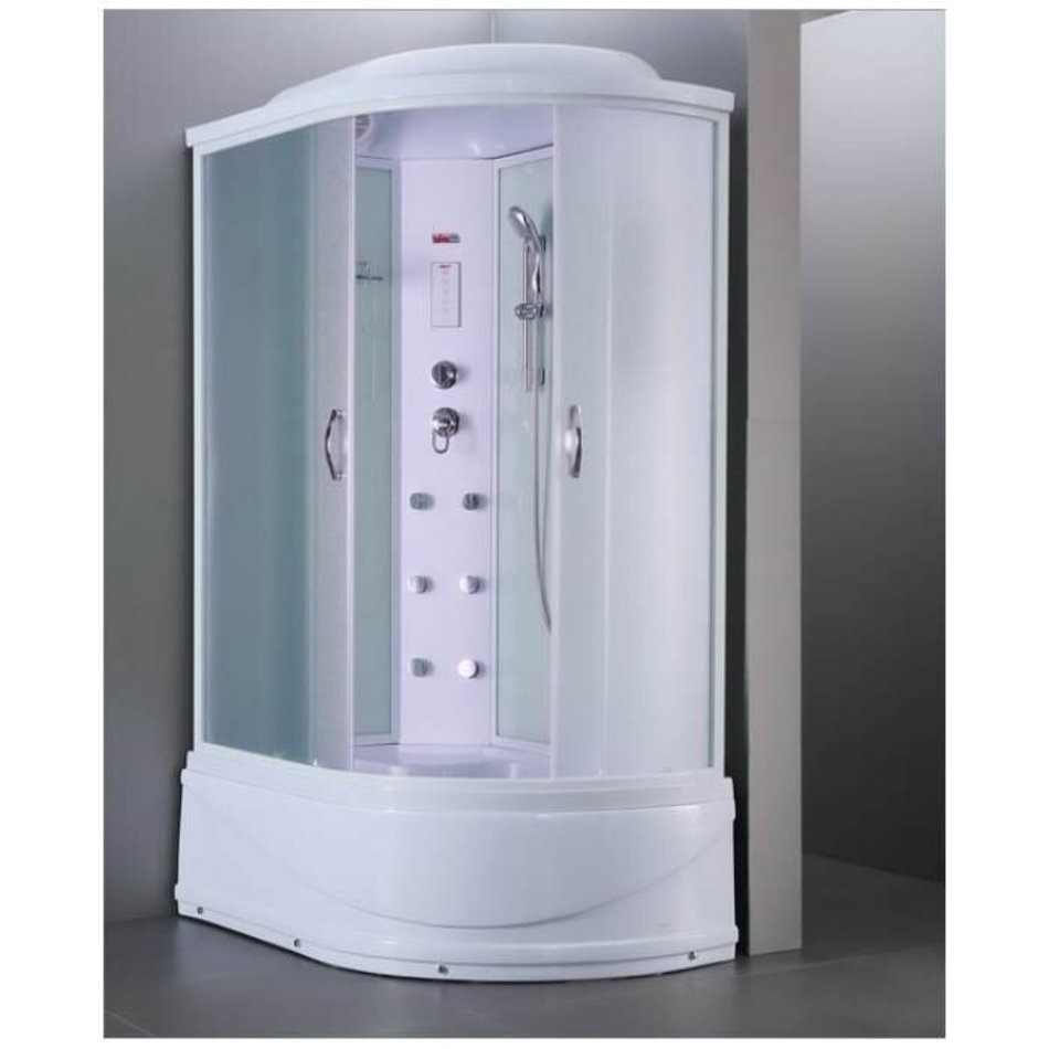 - Комплектация: сенсорный пульт управления; FM-радио; эл. вентиляция; подсветка верхняя; смеситель однорычажный трехрежимный; зеркало;