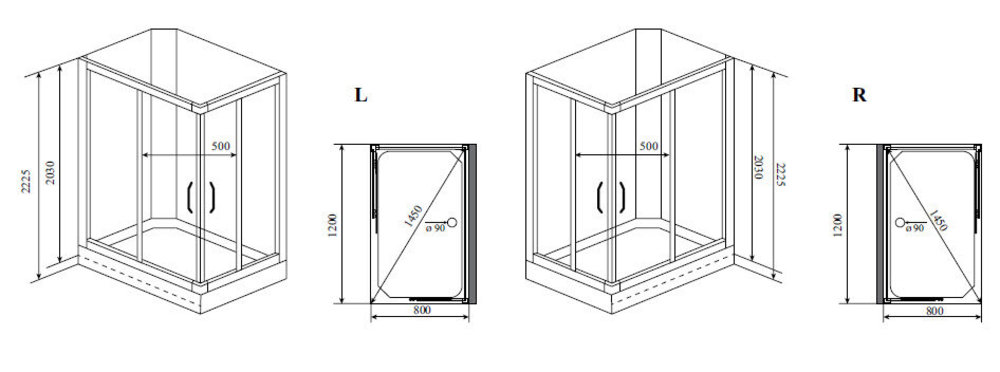 - Поддон: 100% цельный акрил с сифоном (диаметр 90mm), армирован стекловолокном, на усиленном каркасе