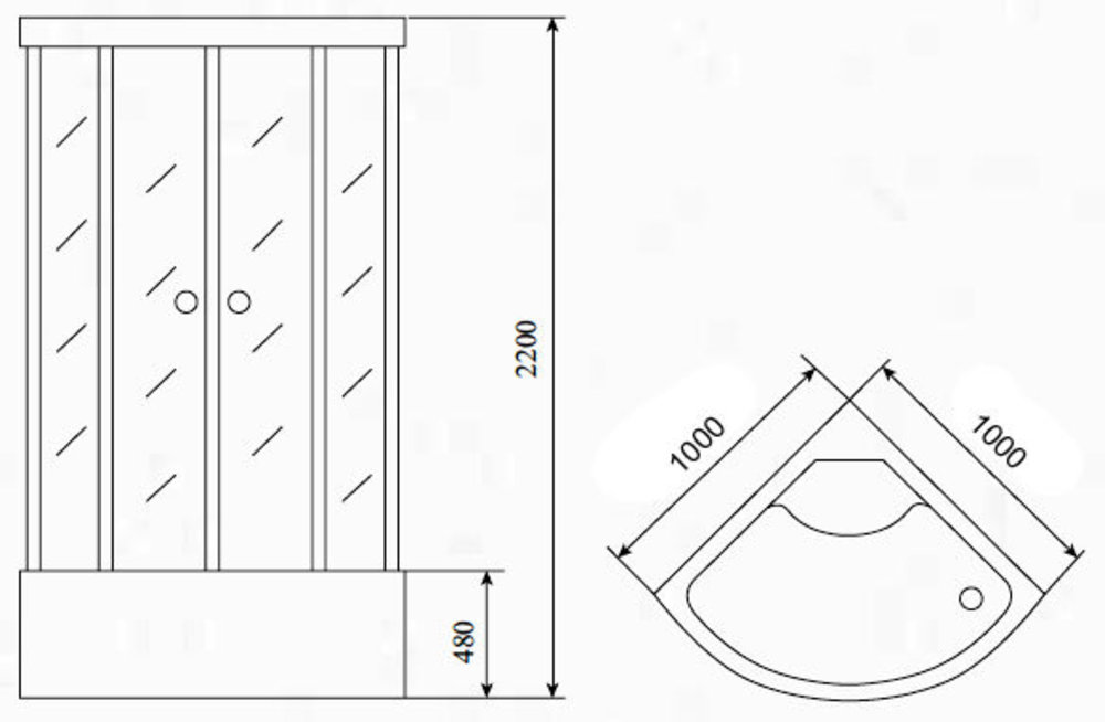 - размер: 1000*1000*2200 мм