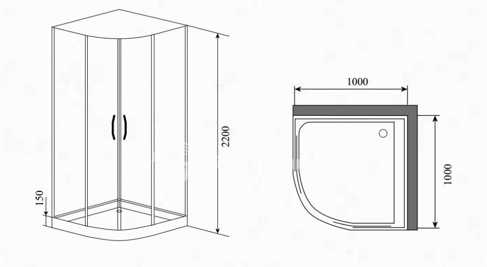 - акриловый поддон с усиленным каркасом и сифоном, 15 см