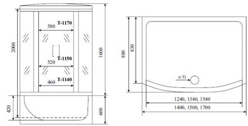 Душевая кабина Timo Standart Т-6650 Silver Fabric 150 x 88 см