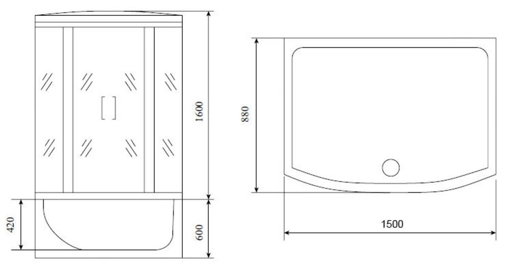 - акриловый поддон-ванна (не ABS), высота 55 см