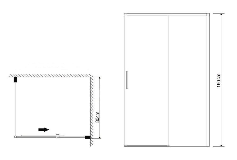 Боковая стенка Grossman Fly1, 80 х 190 см, стекло прозрачное, профиль хром, GR-P80Fl1