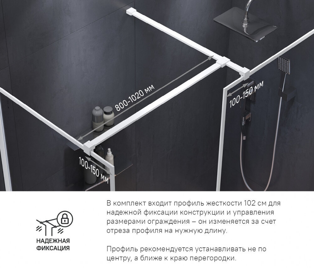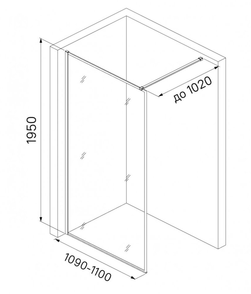 Душевая перегородка Iddis Slide 110 см, свободный вход, стекло прозрачное, профиль белый матовый, SLI8WS1i23
