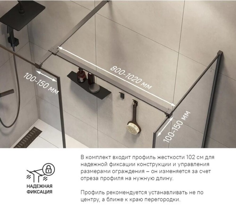 Душевая перегородка Iddis Slide 110 см, свободный вход, стекло прозрачное, профиль графит, SLI8GS1i23