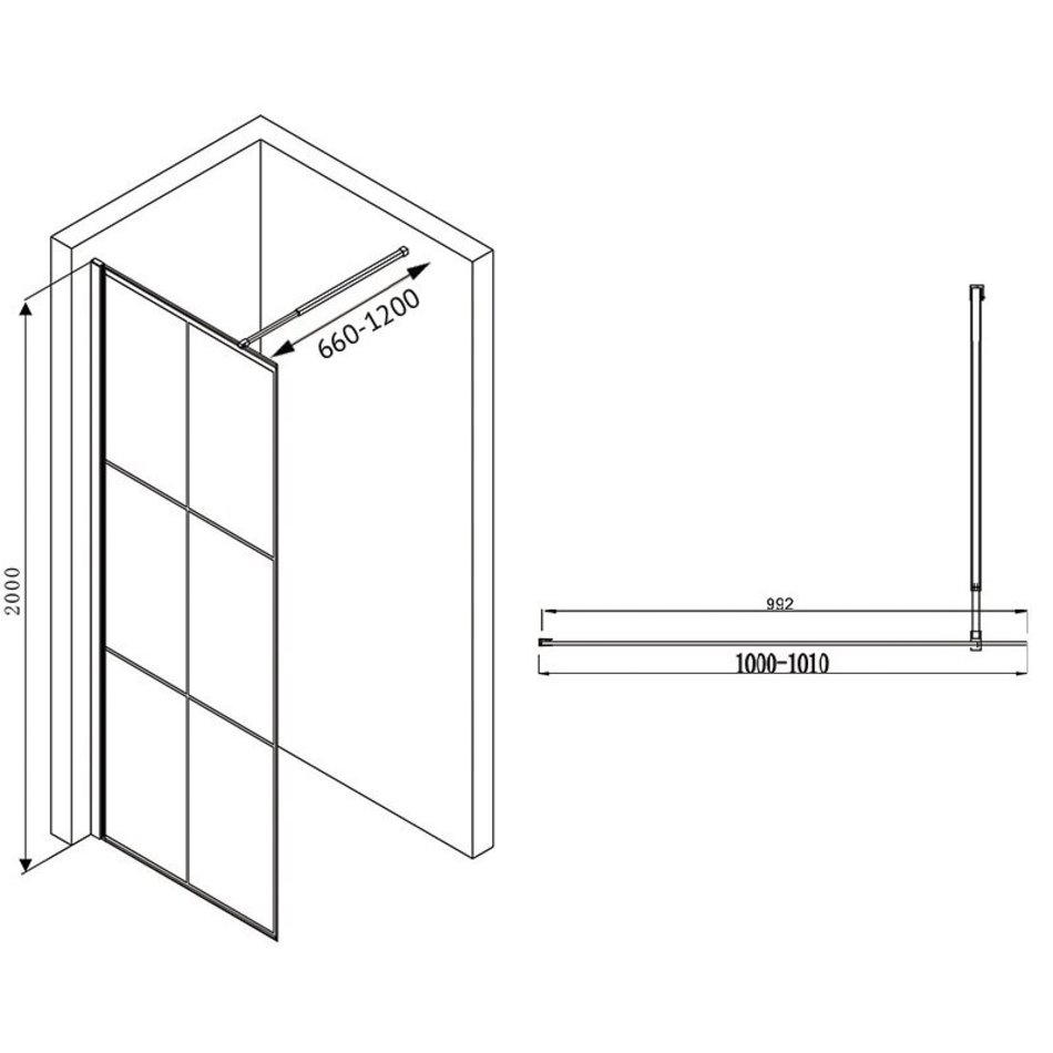 Душевая стенка Abber Immer Offen, 100 см, со свободным входом, стекло прозрачное, профиль черный, AG62100B