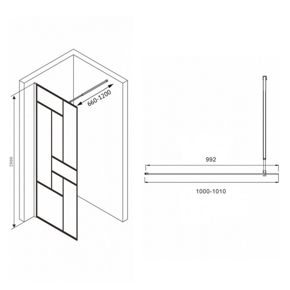 Душевая стенка Abber Immer Offen, 100 см, со свободным входом, стекло прозрачное, профиль черный, AG63100B