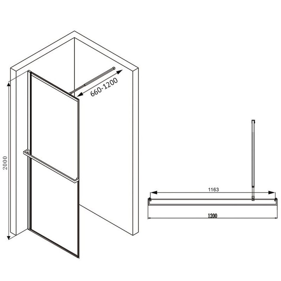 Душевая стенка Abber Immer Offen, 120 см, со свободным входом, стекло прозрачное, профиль черный, AG60120B