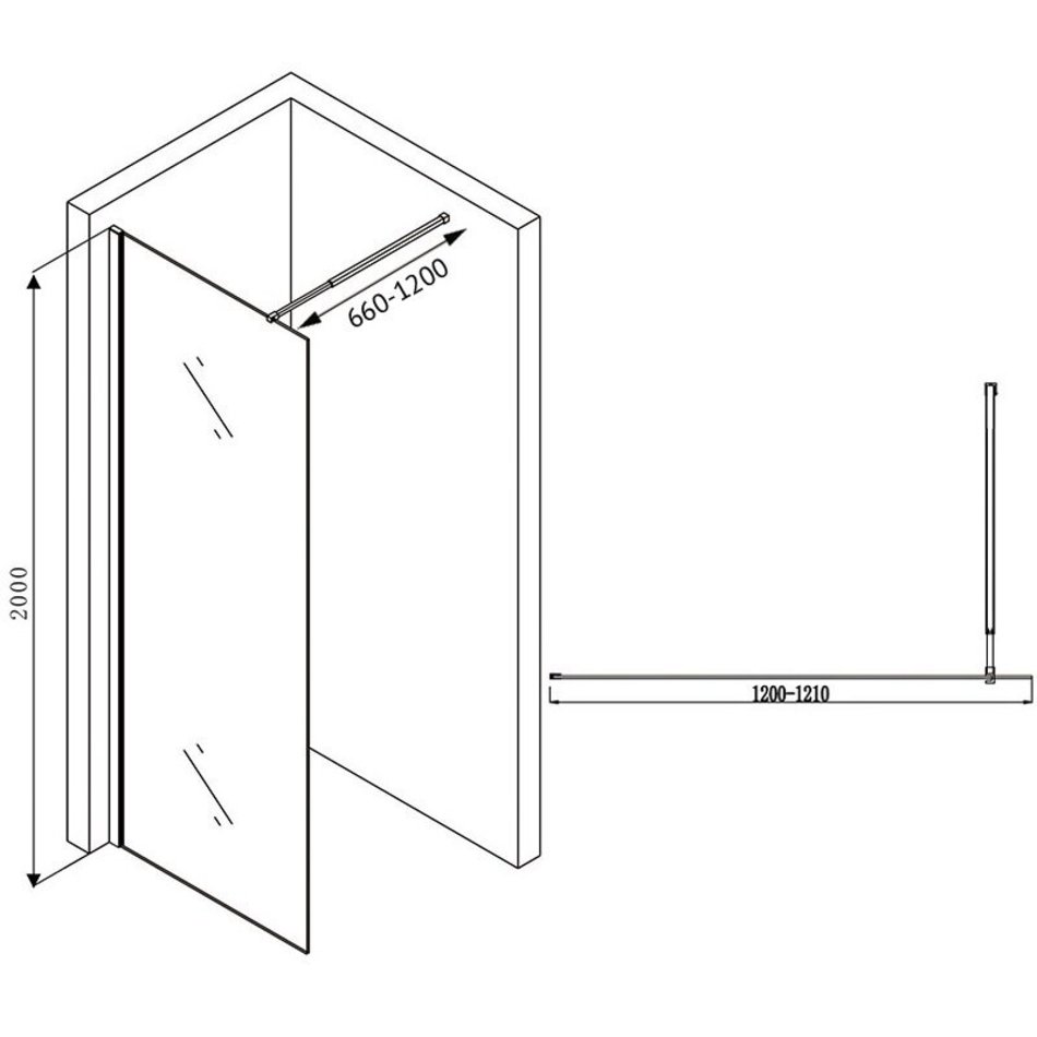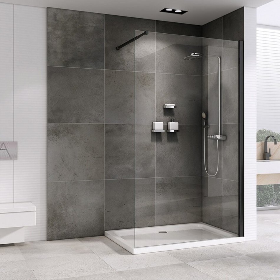 Душевая стенка Abber Immer Offen, 120 см, со свободным входом, стекло прозрачное, профиль черный, AG61120B