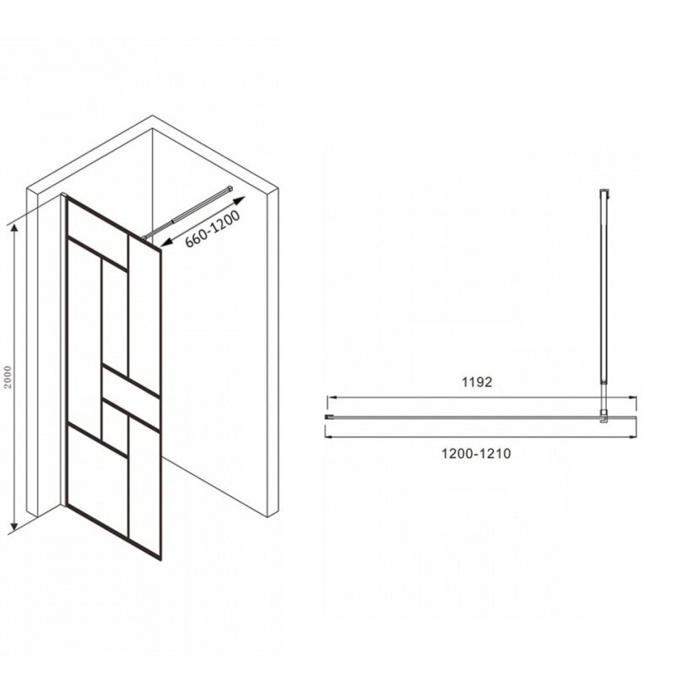 Душевая стенка Abber Immer Offen, 120 см, со свободным входом, стекло прозрачное, профиль черный, AG63120B