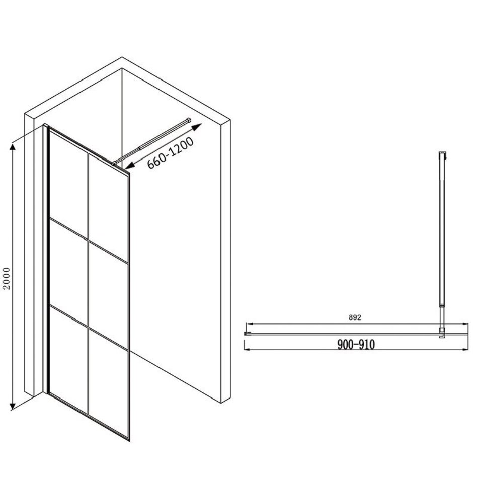 Душевая стенка Abber Immer Offen, 90 см, со свободным входом, стекло прозрачное, профиль черный, AG62090B