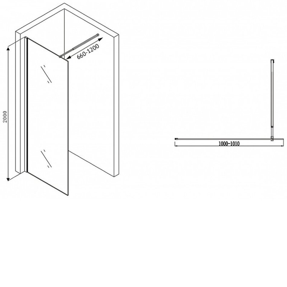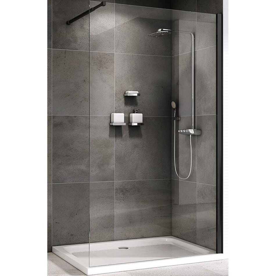 Душевая стенка Abber Immer Offen со свободным входом, 100 см, стекло прозрачное, профиль черный, AG61100B8