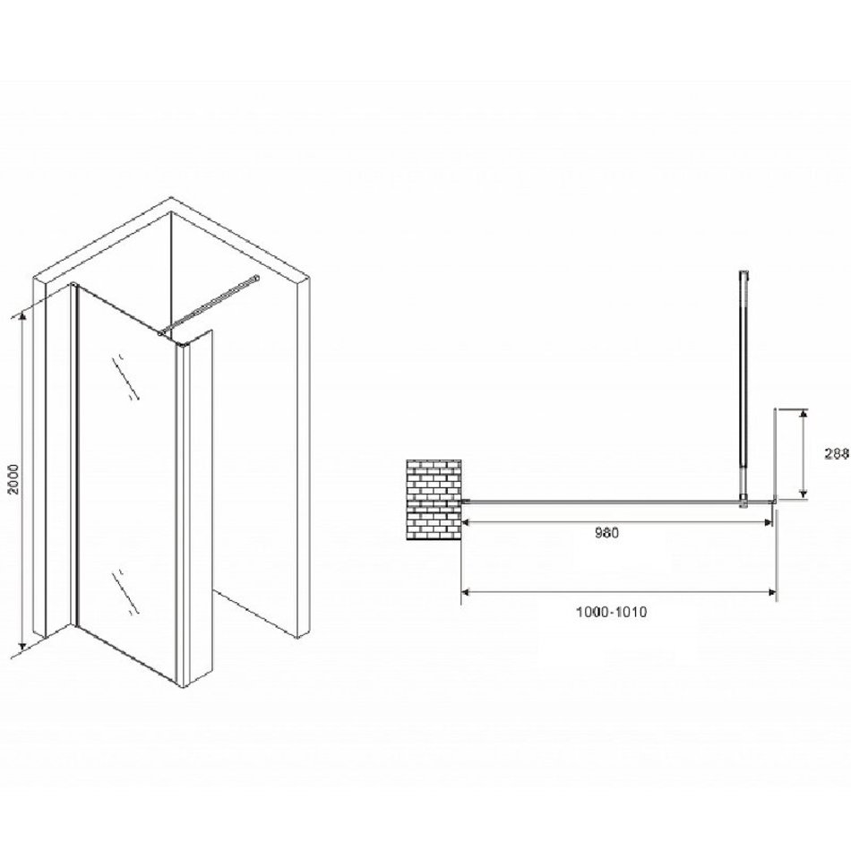 Душевая стенка Abber Immer Offen со свободным входом, 100 см, стекло прозрачное, профиль черный, AG66100B