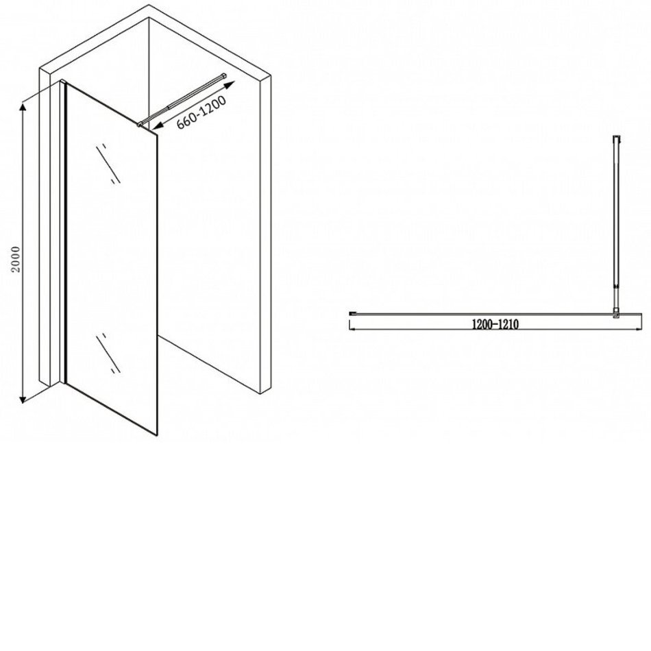 Душевая стенка Abber Immer Offen со свободным входом, 120 см, стекло прозрачное, профиль черный, AG61120B8