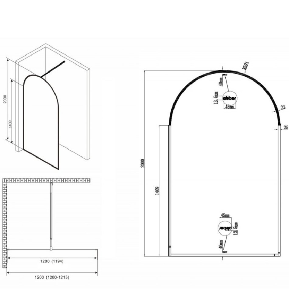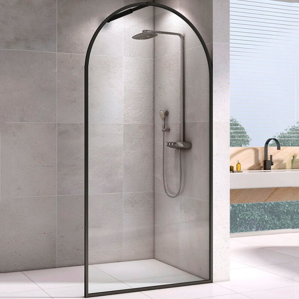 Душевая стенка Abber Immer Offen со свободным входом, 120 см, стекло прозрачное, профиль черный, AG64120B