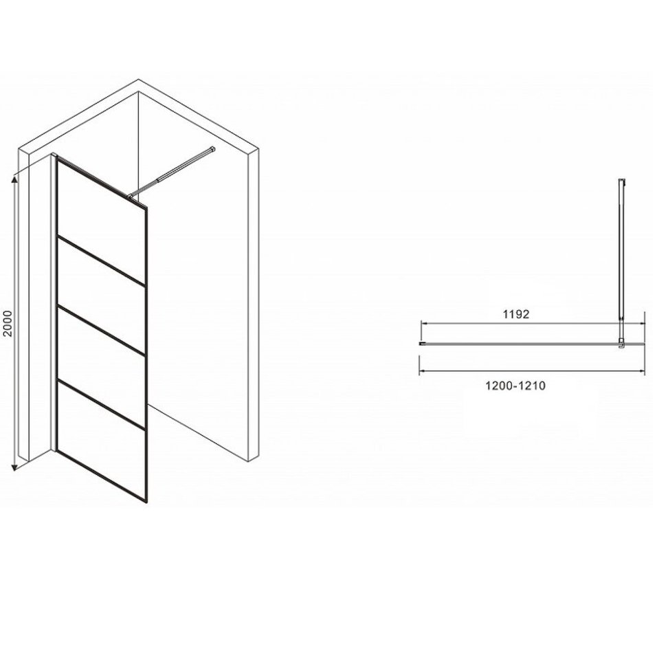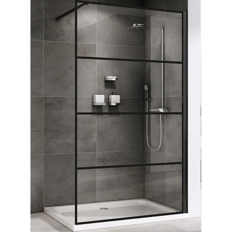 Душевая стенка Abber Immer Offen со свободным входом, 120 см, стекло прозрачное, профиль черный, AG65120B